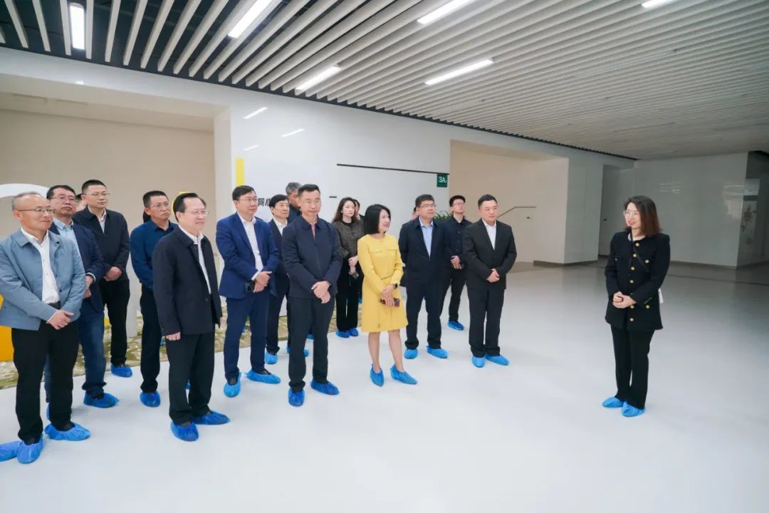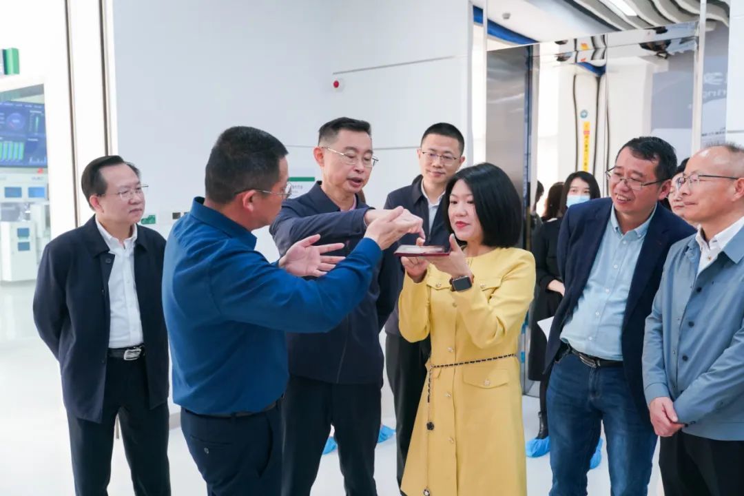 在OPPO广东移动通信有限公司,温国辉一行实地参观手机生产车间,了解OPPO智能手机的制造流程及先进生产技术,并对AI技术在其产品上的研发应用进行深入调研。