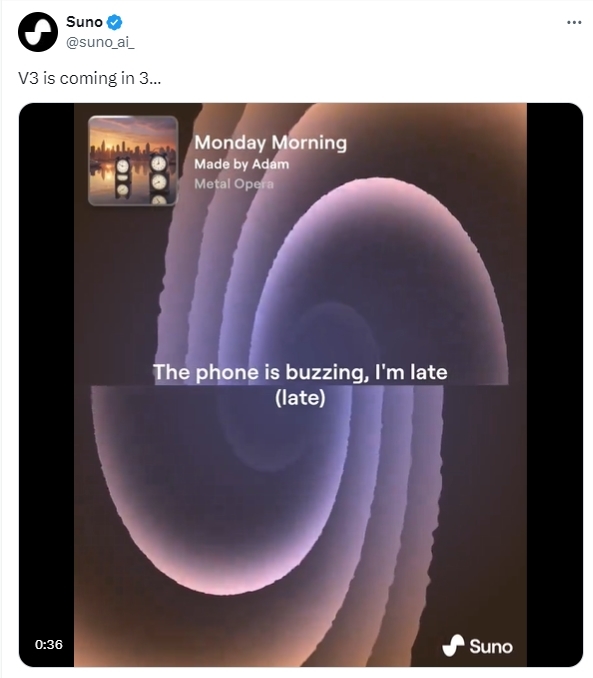 站长之家3月20日 消息:完蛋!歌手们的饭碗也要被AI砸了!Suno AI 宣布,其最新的suno v3模型即将推出。从官方放出的音乐demo来看,V3模型的创作能力十分惊人。用户只需要简单的文字描述,就能创作出具备专业水准的音乐。