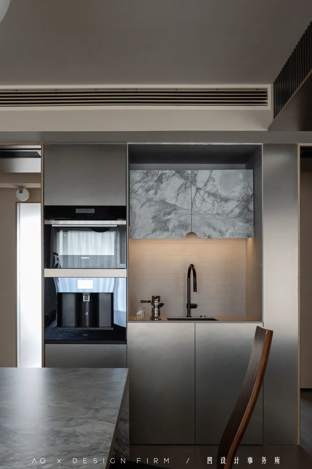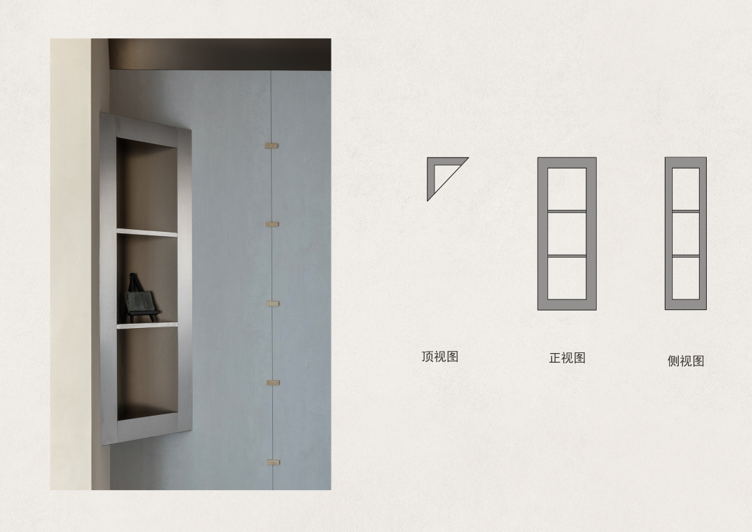 其余的柜体用了金属板并做了抽缝处理,从一进门就能感受到一股独特的高冷范儿扑面而来。