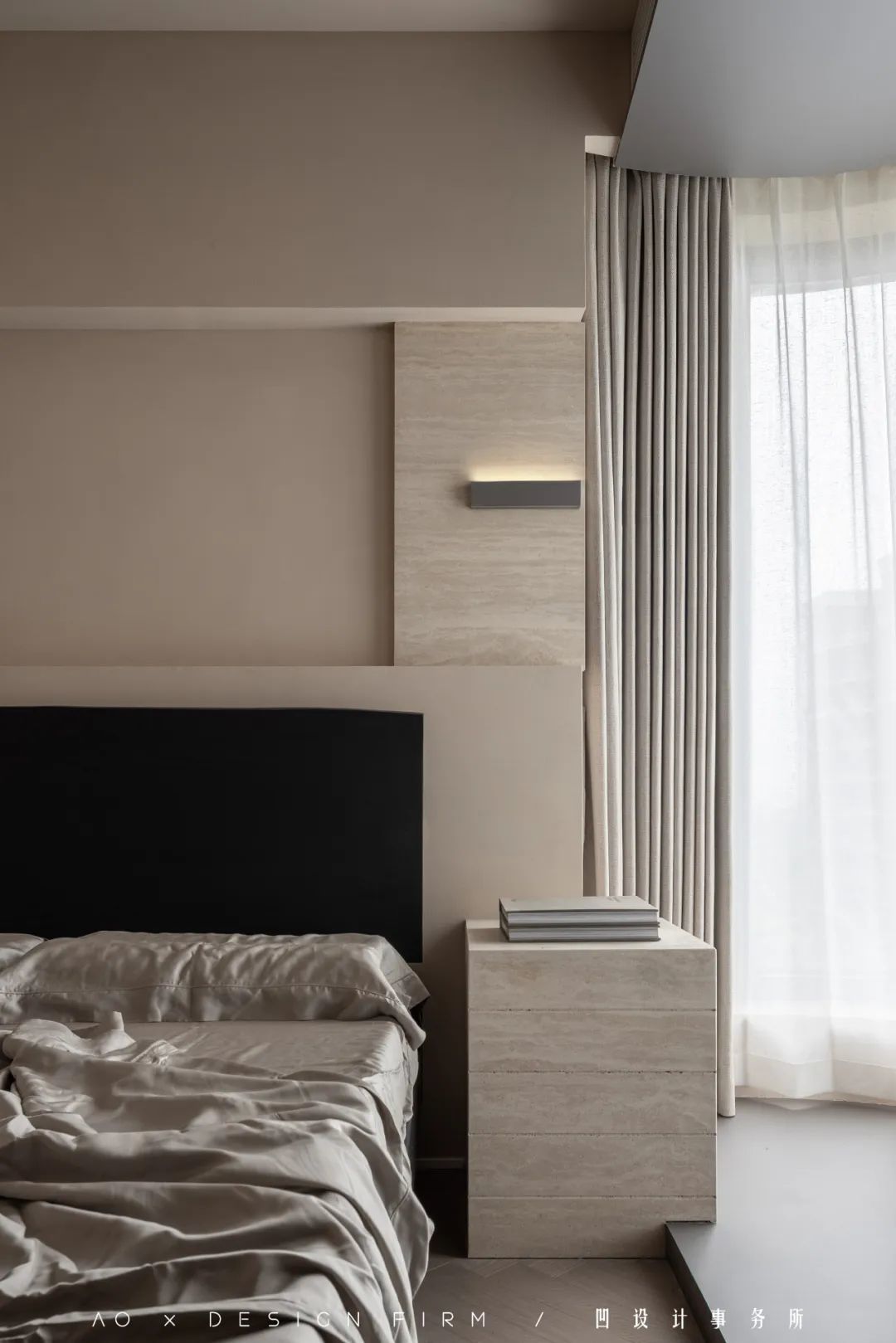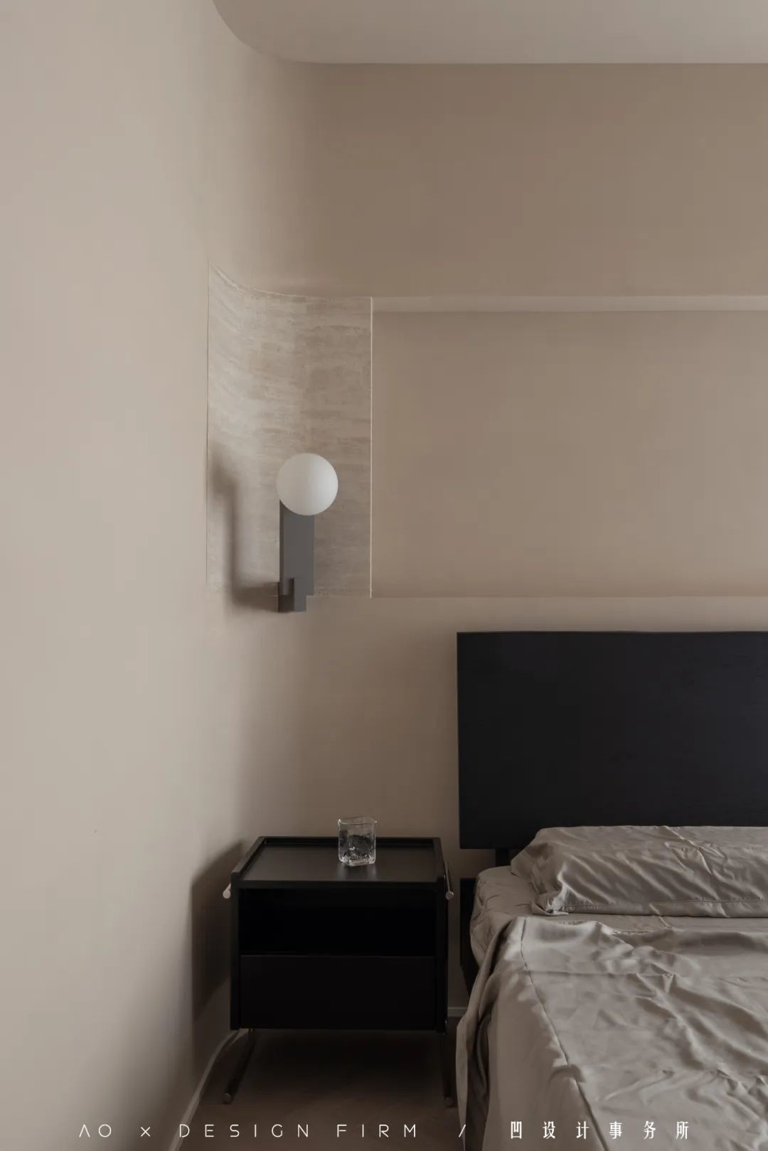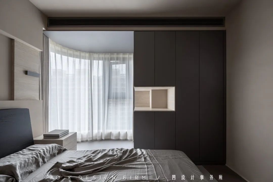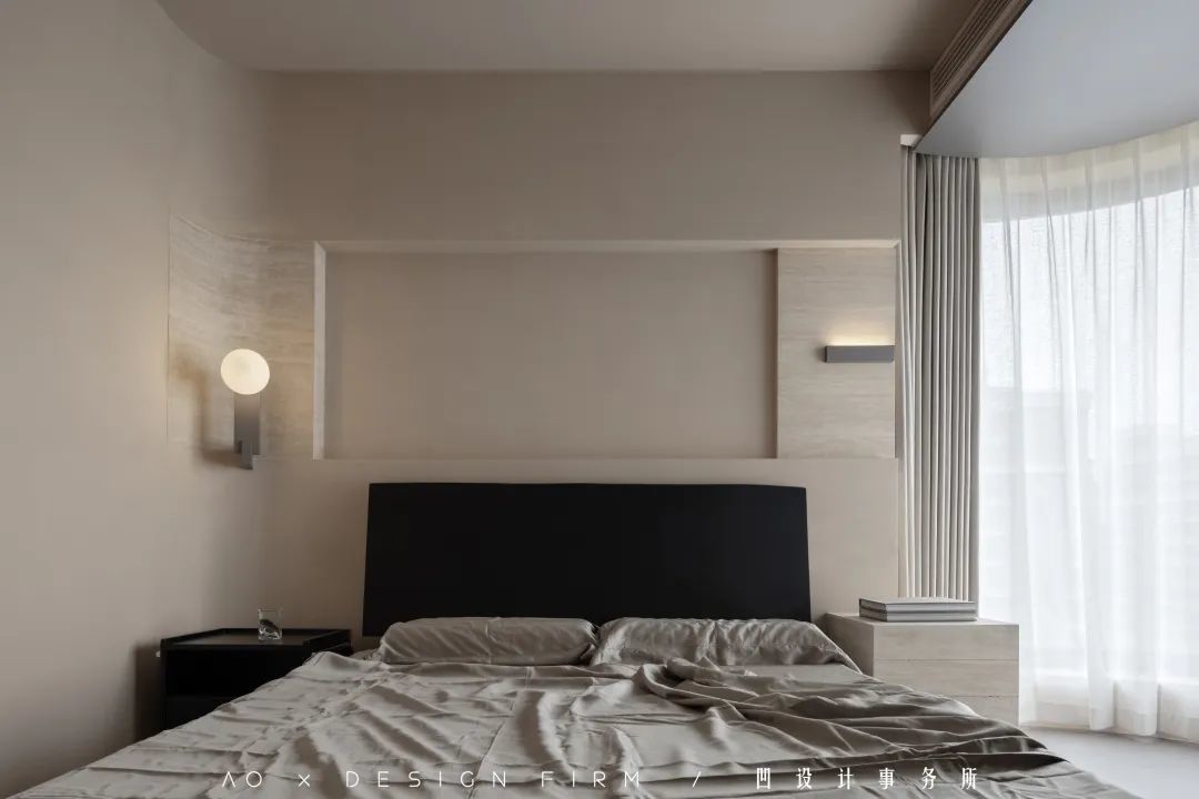 两盏熟悉的壁灯,再次出现在卧室,表达出设计师整体而流畅的设计语言。