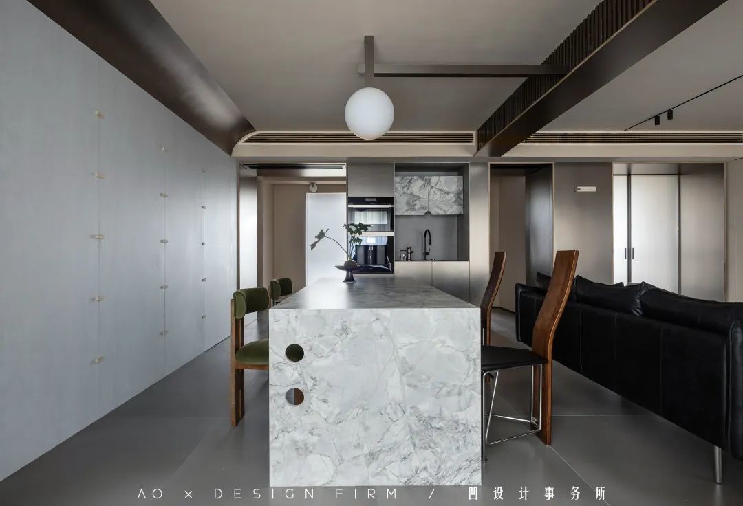 ○ 拆不掉的承重墙,改造成了水吧,围绕岛台、餐桌,形成合理的动线