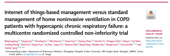 慢性阻塞性肺疾病(COPD)是全球第三大死亡原因。近日,复旦大学附属中山医院呼吸与危重症学科白春学、宋元林教授联袂清华大学医学院廖洪恩教授在柳叶刀子刊《电子临床医学》(eClinicalMedicine)在线发表基于物联网的家庭无创正压通气治疗COPD合并慢性呼吸衰竭的随机对照前瞻性研究成果显示:通过设置预警指标,研究团队能早期识别潜在风险,并及时进行干预,为患者提供了院外延续性管理。