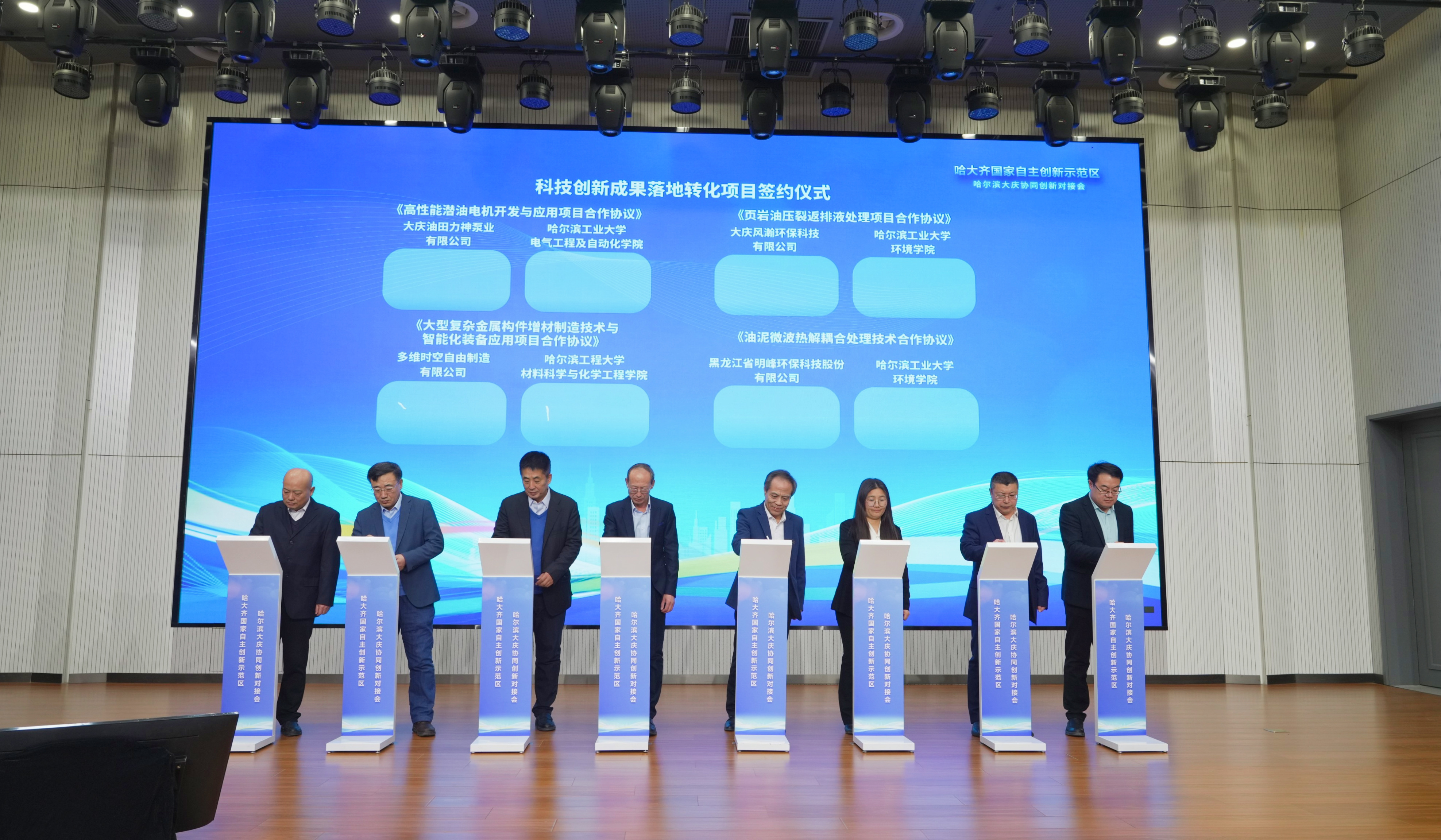 科技创新是引领产业全面振兴的重要引擎,这次对接会使大庆市推进科技创新成果落地转化取得突破性进展。在会上,哈尔滨工业大学、哈尔滨工程大学、哈尔滨理工大学及省农科院一共发布了8项科技创新成果,来自大庆的8家企业同哈工大、哈尔滨兽医研究所、省农科院分别签约科技创新成果项目合作,涉及油气生产、无人机驾驶、智能制造、智慧农业等多个领域。