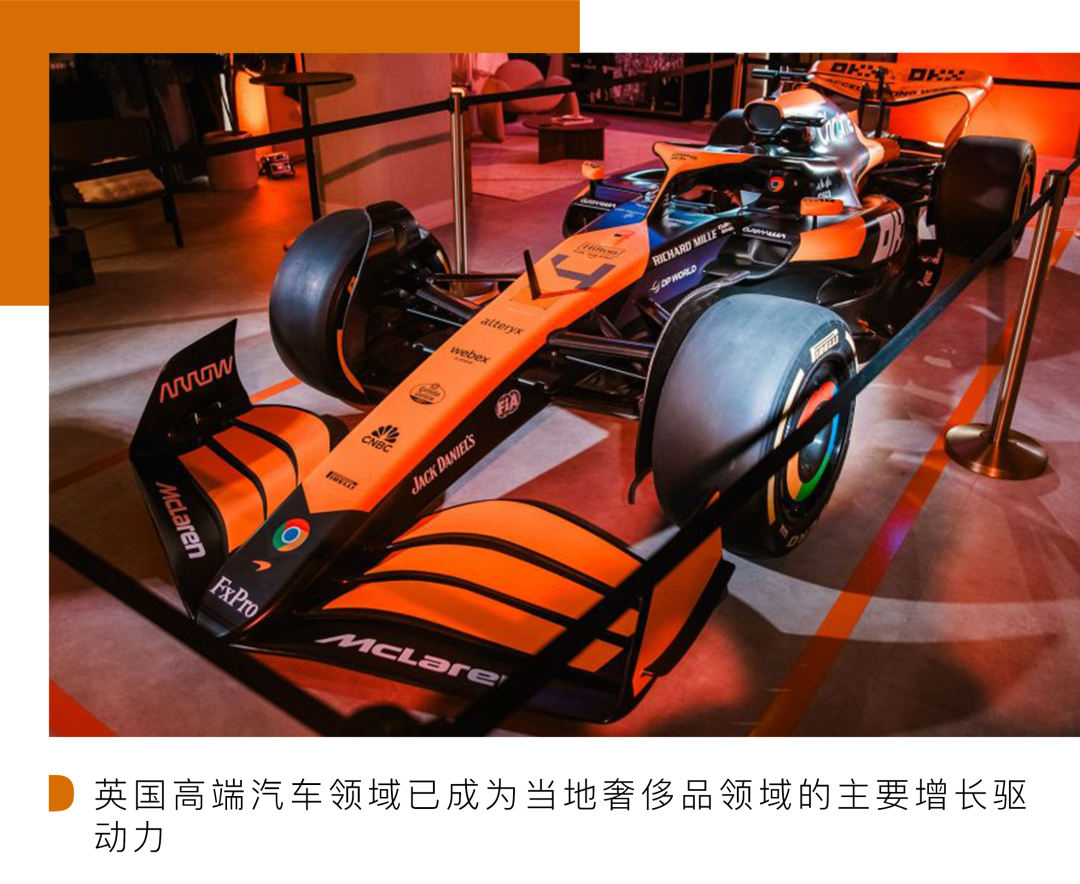 其中,英国高端汽车领域成为当地奢侈品领域的主要增长驱动力,包括阿斯顿-马丁、宾利、捷豹、路虎、迈凯轮和劳斯莱斯等高端汽车品牌,在过去五年该领域年营业总额达到了约 329 亿英镑,其价值超过该国其他行业--时尚和配饰、实体零售商、线上零售商、食品和饮料的营收总和。值得一提的是,除了高端汽车领域外,时尚消费也位居增长前列。