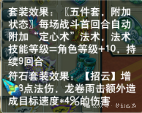 为了解决这个问题,小美非常非常安利各位尝试定心术套装!从属性上来说,定心术完全可以弥补前排灵饰和变身套损失的面板法伤。而且,五件套的定心术套装持续10回合(算上第1回合),对于快节奏的帮战来说已经足够啦。