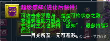 其次,超级感知的赐福。在帮派联赛遇到开场五个隐身宝宝的情况非常多,这无形中削弱了龙宫手长的优势。超级技能赐福上线之后,小美觉得对龙宫来说是一个巨大的加强,原因各位少侠都懂,获得超级感知赐福之后,龙宫本身也会获得感知的能力。