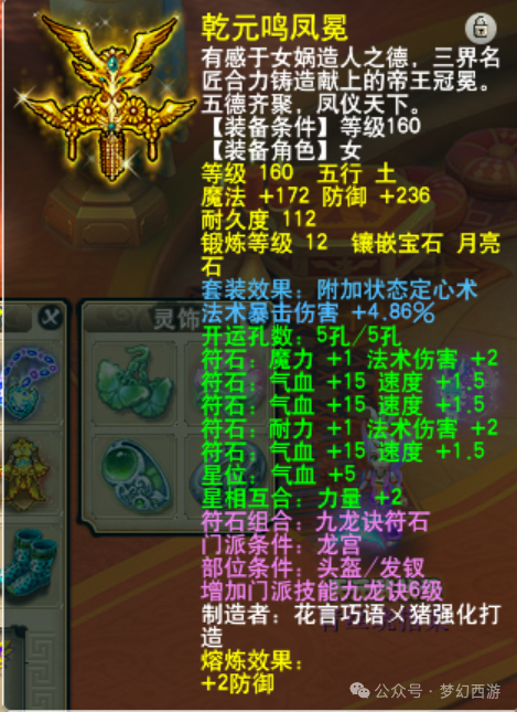 各位少侠都知道,说好听点,龙宫是一个稳健的法系。一针见血的说,龙宫缺乏足够的爆发。所以,在配装上,咱龙宫和主流法系门派的配装思路不同,还是要偏重法术暴击一些。
