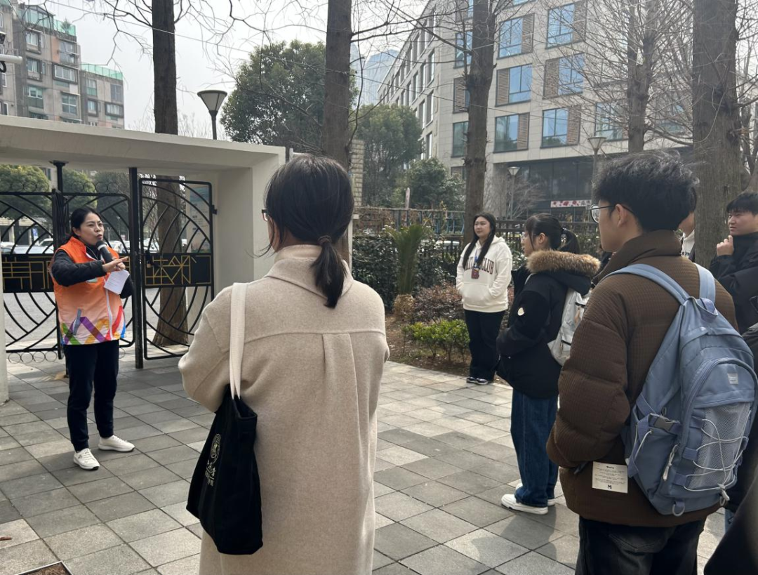 此次“菁才课堂”从国定支路15分钟社区生活圈出发。这个“圈”,是五角场街道精心打造的“人人系列”核心项目,呈现诸多基层治理的智慧和经验。通过实地讲解,学生们不仅了解国定支路短短550米的“前世今生”,也更深入地感悟了基层治理的实践效能与意义。