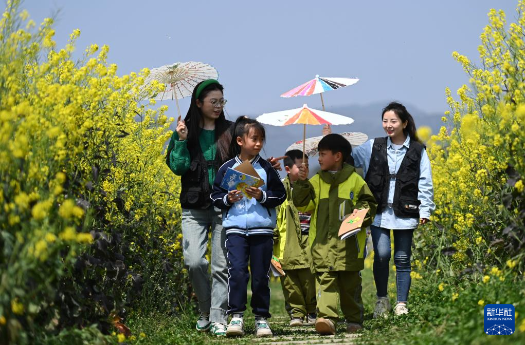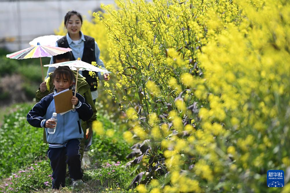春日里,在贵州省遵义市绥阳县盛林生态农场,油菜花、桃花等花卉竞相绽放,吸引游人前来赏花游玩。