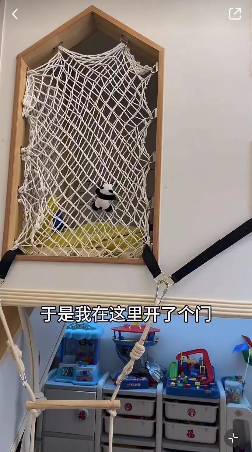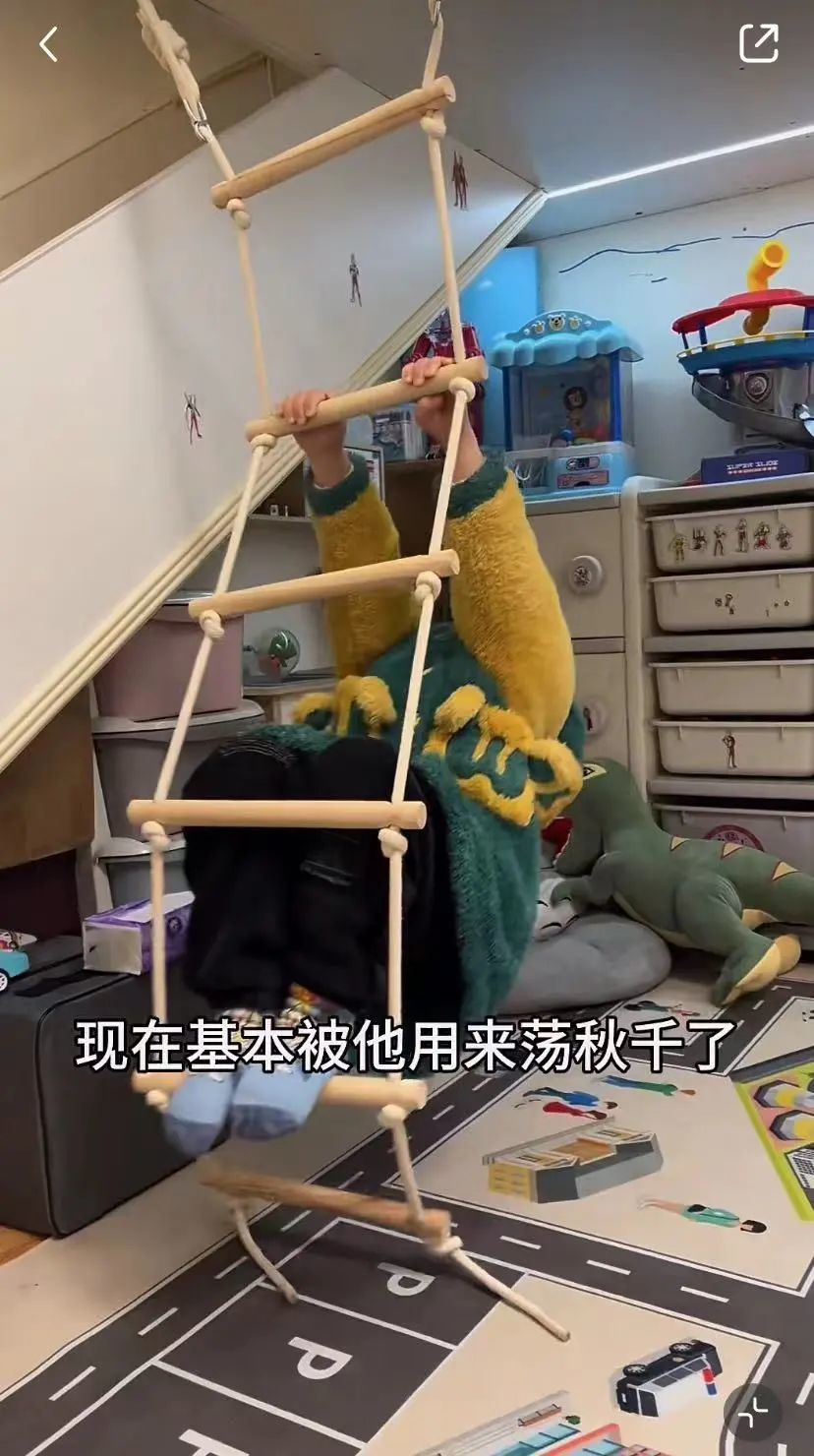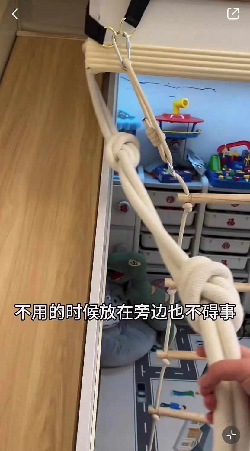 窗户下有一架绳梯,目前主要是给娃荡秋千用的。