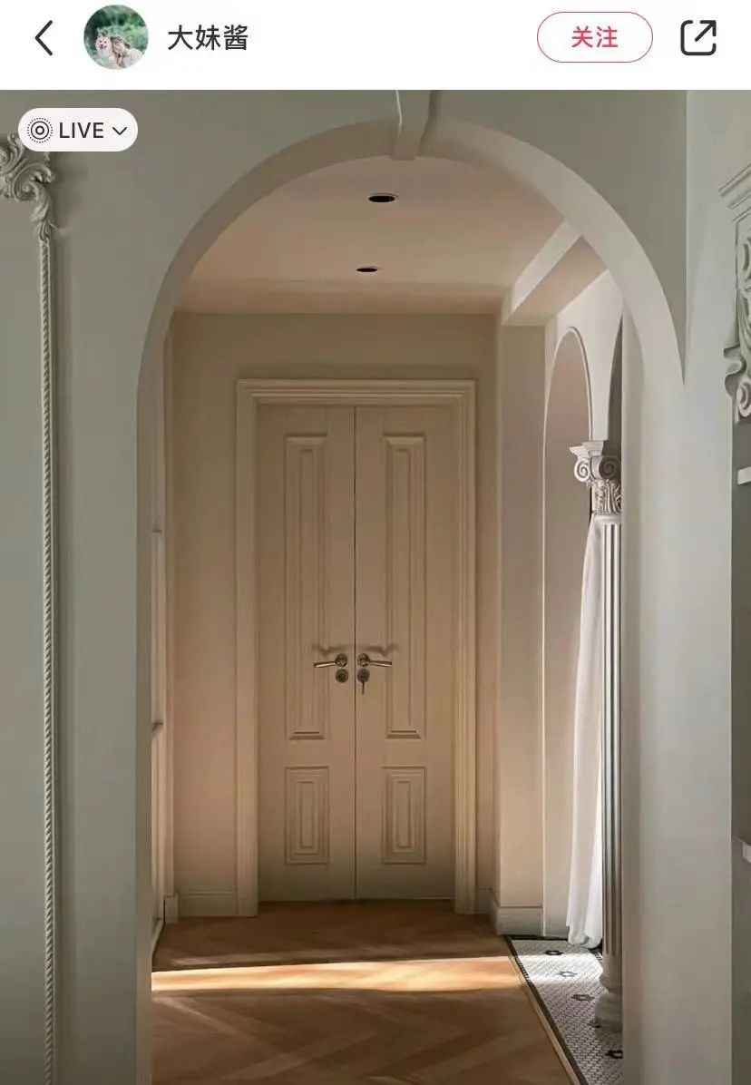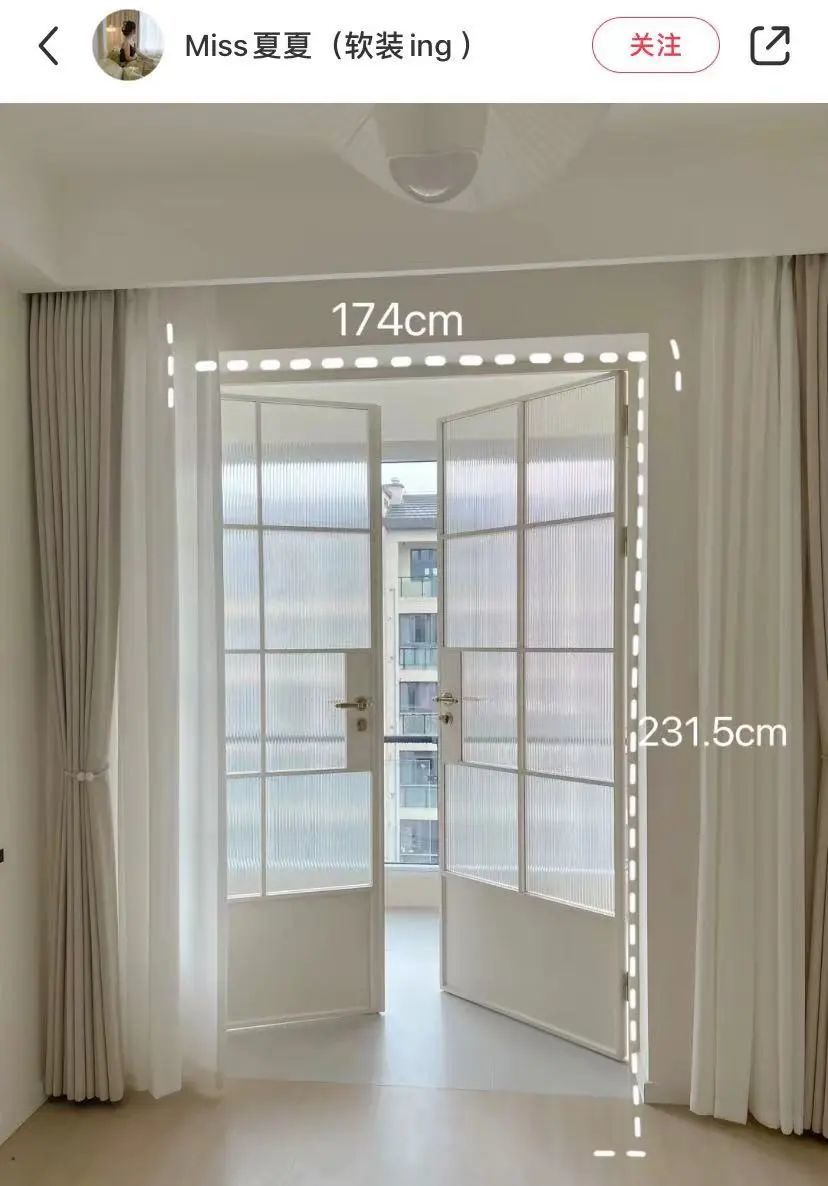 还有博主@真真真ing 的自装房,哪怕只有0.9m的窄门洞也能做水波纹双开门,再改一下门框色,妥妥的轻法式慵懒风。