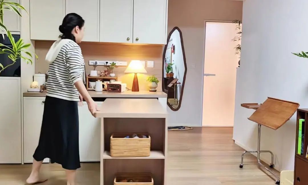 人少的时候不需要大餐桌,小吧台就能解决一日三餐,适合独居或者小夫妻两人使用。