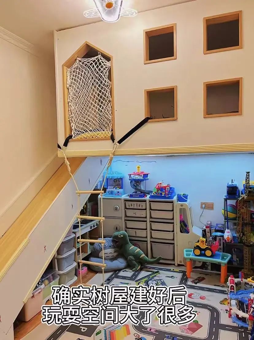 因为住过一次带滑梯的民宿,儿子一直念念不忘,博主就决定在家也搭一个同款树屋。