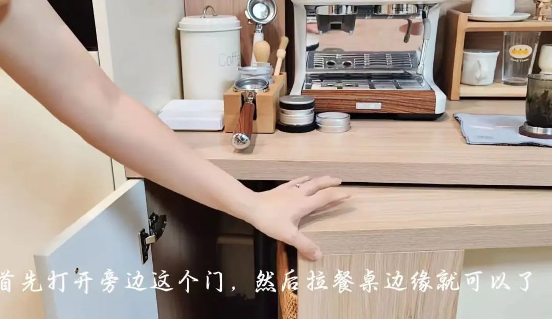 餐边柜台面可以放咖啡机、烧水养生壶、杯子收纳、小绿植小摆件……