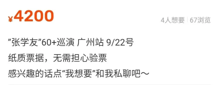 在这方面,学友哥还是相当在线的,尤其是在广东地区,去年在广州宝能观致文化中心举办的演唱会,门票三天就被抢得一干二净,原价2280一张的门票,高峰时被炒至4000多元一张。