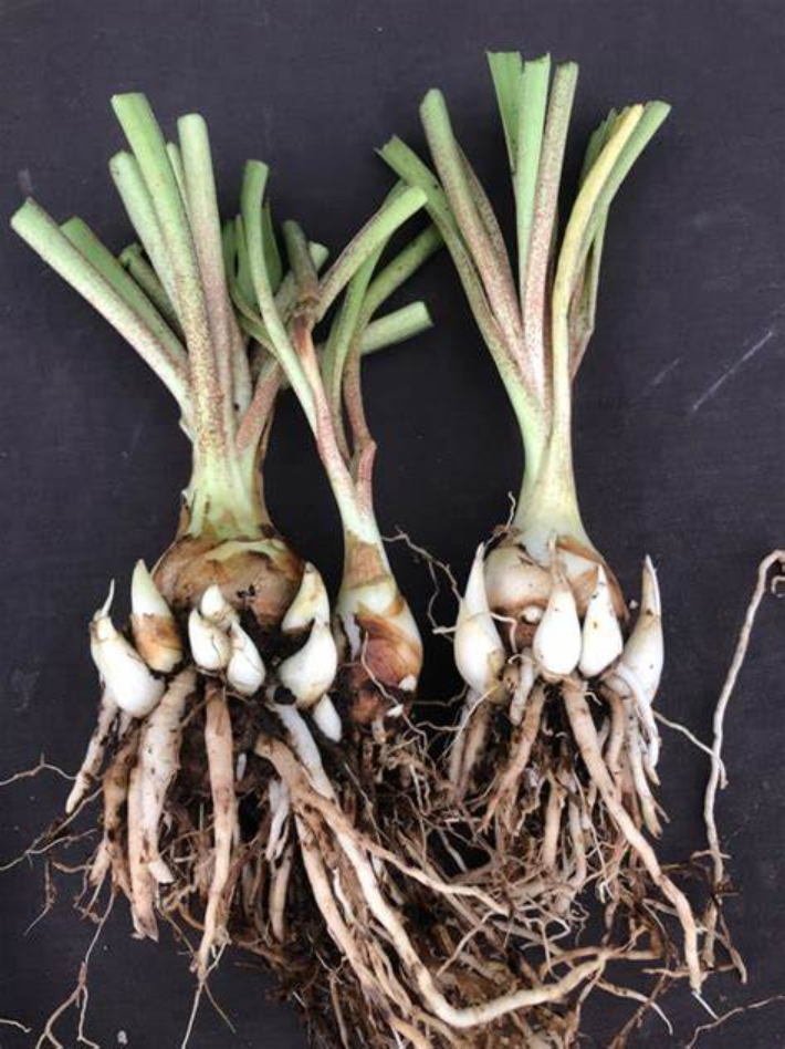 在栽种之前,可以先把底部干枯的根系剪掉。如果家里有杀菌溶液,比如常见的多菌磷溶液或高锰酸钾溶液,种球放在里面浸泡半小时,再拿出来晾干,之后再栽种。