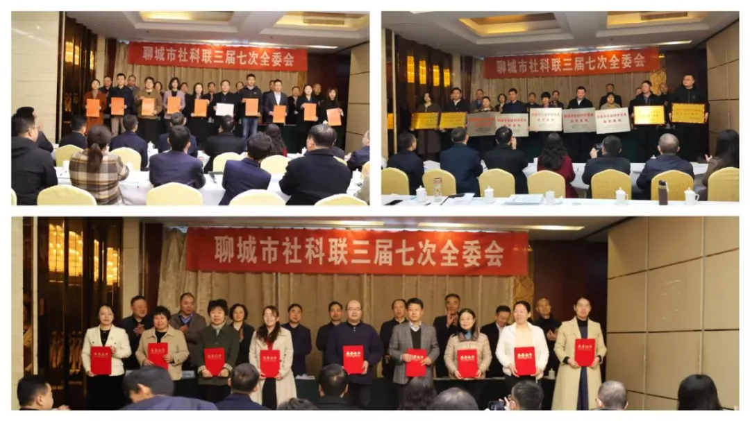 会议宣读了《关于〈中国社会科学报〉头版刊发聊城学者理论文章情况的通报》《关于表扬 2023年度聊城市社会科学工作先进典型的通报》《关于表扬2023年度聊城市优秀社科理论专家的通报》《关于命名刘章发等为“羡林学者”的决定》《关于命名石小寒等为“羡林学者青年专家”的决定》《关于命名第二批“羡林学者青年专家”的决定》《关于公布“十四五”第三批聊城市社会科学普及示范单位的通知》《关于公布第十一批聊城市社会科学普及教育基地的通知》等,为刘章发等首届羡林学者及周嘉等羡林学者青年专家代表颁发了命名证书,为2023年度聊城市优秀社科理论专家代表颁发了荣誉证书,为荣获第十一批聊城市社会科学普及教育基地和“十四五”第三批聊城市社会科学普及示范单位的代表颁发了铭牌。