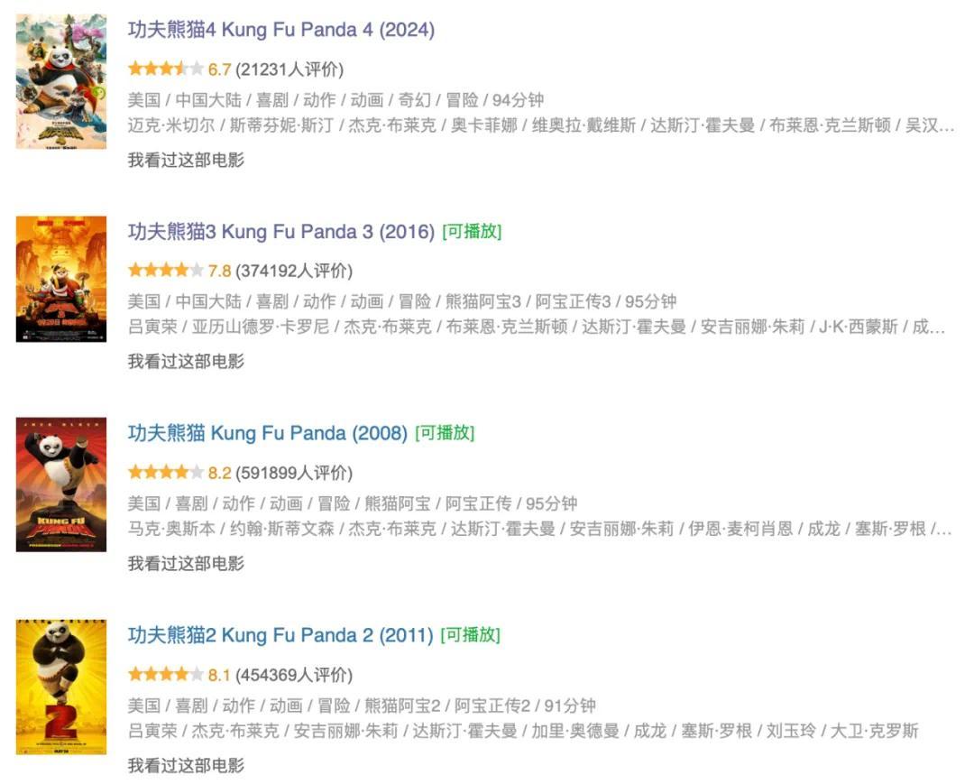 不管是国内还是国外,《功夫熊猫4》的口碑都是该系列中最差的。