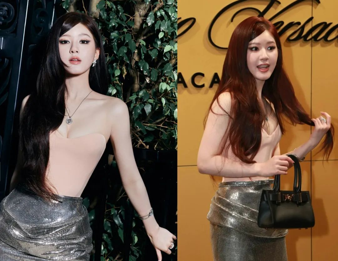 虽然跟精修图对比,赵露思的生图比较有肉感,实际上她本人并不胖,相反腰细、腿也细,只是上镜的话脸圆会显胖,接了假发的及腰长发也会在视觉上压身高,使本就不高的她身材比例看起来更一般。因此,外形条件不够好的她在演绎大牌服饰的时候本就有局限性,加上妆发拉胯,硬生生把大牌衣服穿出了接地气的感觉。