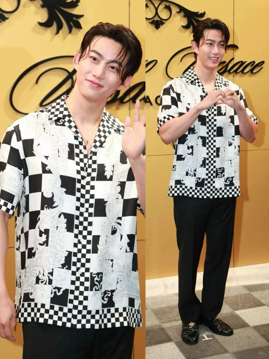 何猷君的哥哥何猷亨穿了一套灰色西服,跟弟弟比起来颜值更普通一些。