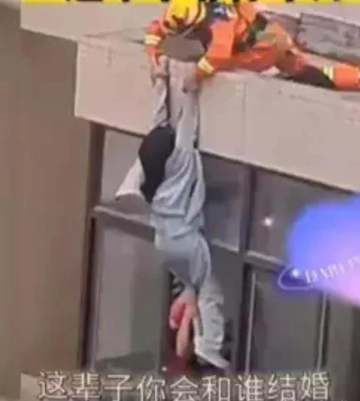 然而阳台内的消防员眼疾手快,一下子就抓住了女孩子双腿,牢牢地攥在了胸口。可是意外再次出现,万万没想到女孩子穿的运动裤没有腰带,阳台内的消防员一用力竟然将女孩子的裤子拽了下来,因为运动裤很顺滑,让刚刚似乎已经脱离了坠亡危险的女孩,再次有了掉落楼下的危险。
