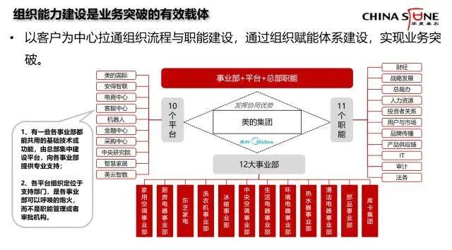 但在数字化与智能化时代,美的要提升全球竞争力,必须在集团层面加大技术创新投入,实现产品创新领先;打造全球供应链系统,推动数字化、智能化转型,实现产业协同,才能提升美的整体竞争力。所以美的新掌门人方洪波在2015年又掀起新一轮美的组织与人才机制创新,相继推行组织变革与人才机制创新789工程与101112工程,将分散在各事业部的研发,物流、供应链、电子商务、智能化等整合到集团层面,形成平台,提高集团对各产业与新事业的平台化赋能能力。及至2018年,美的在集团层面,像华为一样打造了十大平台。