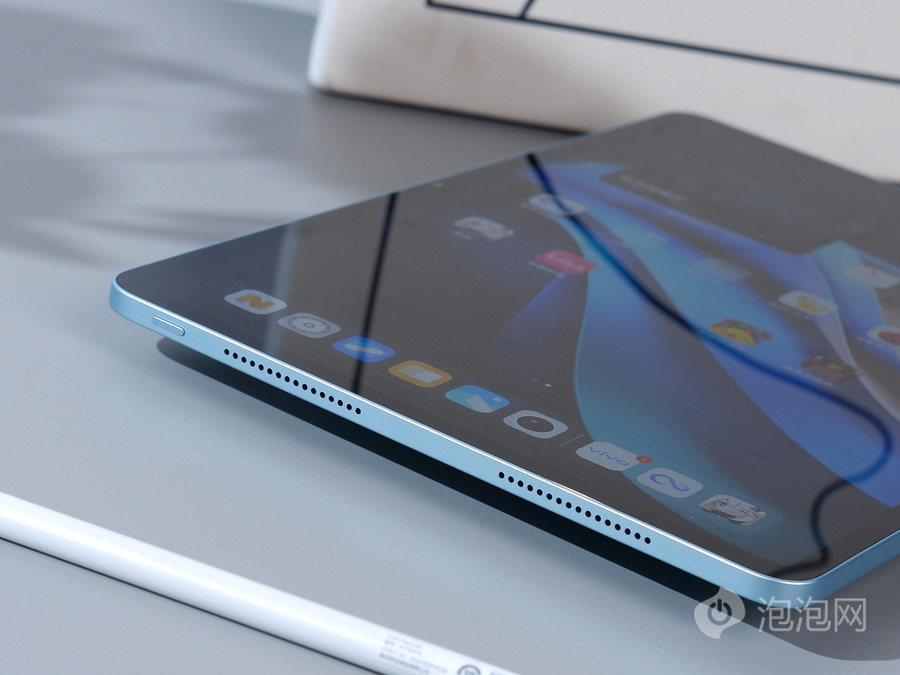 +、-按键位于机身上侧。这款平板电脑的上侧还设计有手写无线充电磁吸条,可适配vivo Pencil2触控笔。
