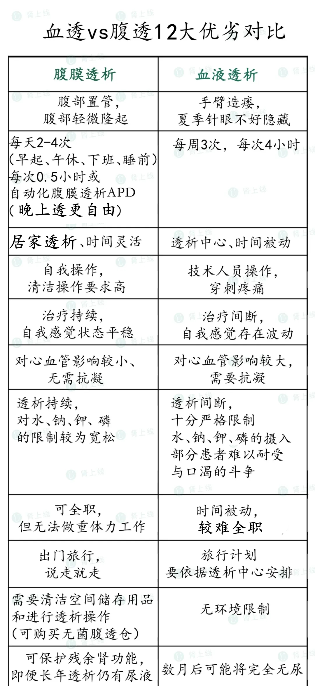 理论上来说,腹透和血透,在清除毒素的能力上相似,能让患者存活的时间不相上下。