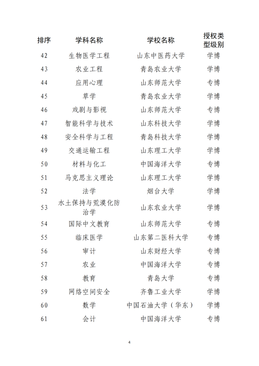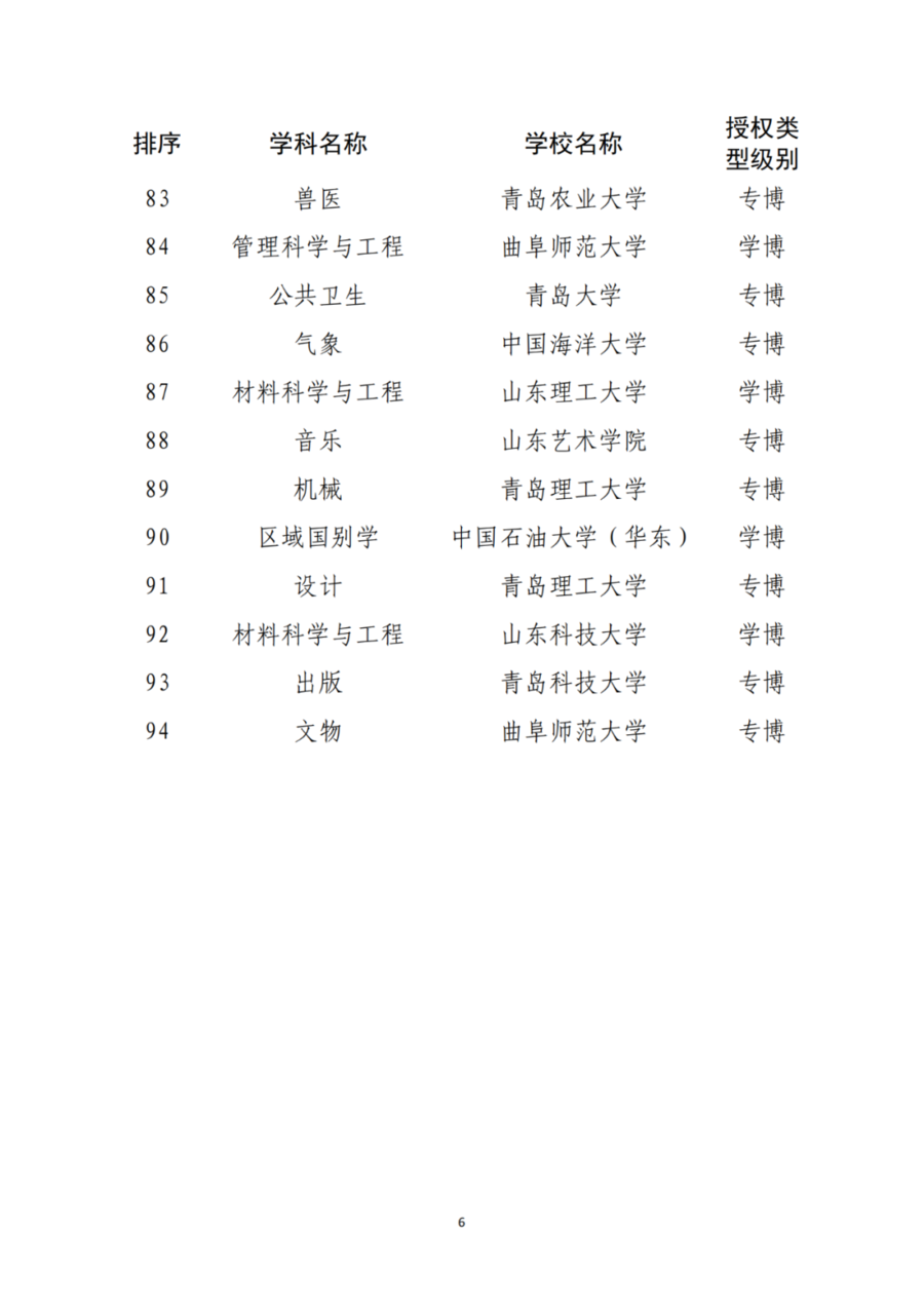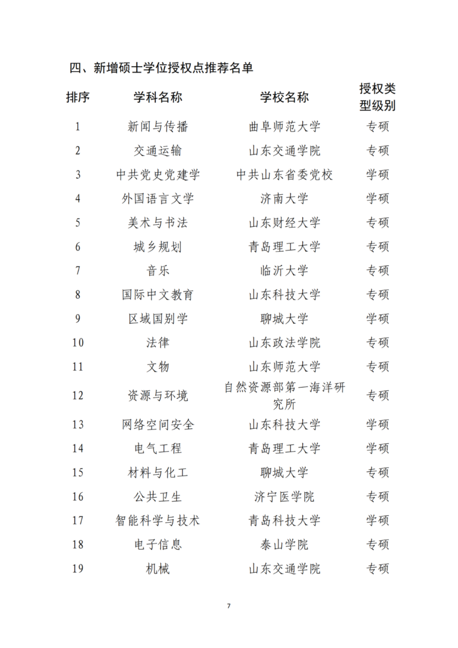 山东省人民政府学位委员会关于新增博士硕士学位授权审核推荐名单和排序情况的公示