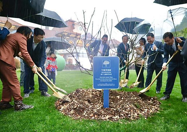 杨福家院士生前曾说过,将“牛顿苹果树”展示给人们很重要,但更重要的是将牛顿其人和其科学精神充分展示给社会公众。昨天,当年和杨福家一起促成“牛顿苹果树”来沪的英国驻沪总领事包迈岫也来到现场,用中文说出“十年树木,百年树人”,他期待这株苹果树能成为中英科技交流的桥梁。