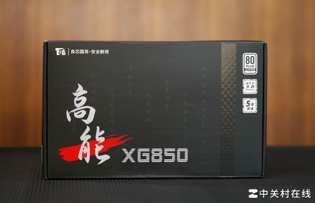 百盛高能XG850电源采用标准的ATX长度规格,适用于大部分ATX和mATX机箱,外壳采用黑色的喷涂工艺,侧面有XG850的标签。