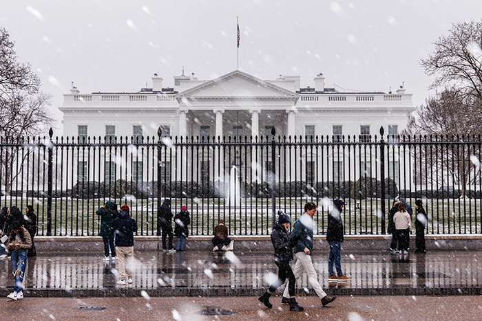 这是1月15日在美国首都华盛顿拍摄的雪中的白宫。(来源:新华社)