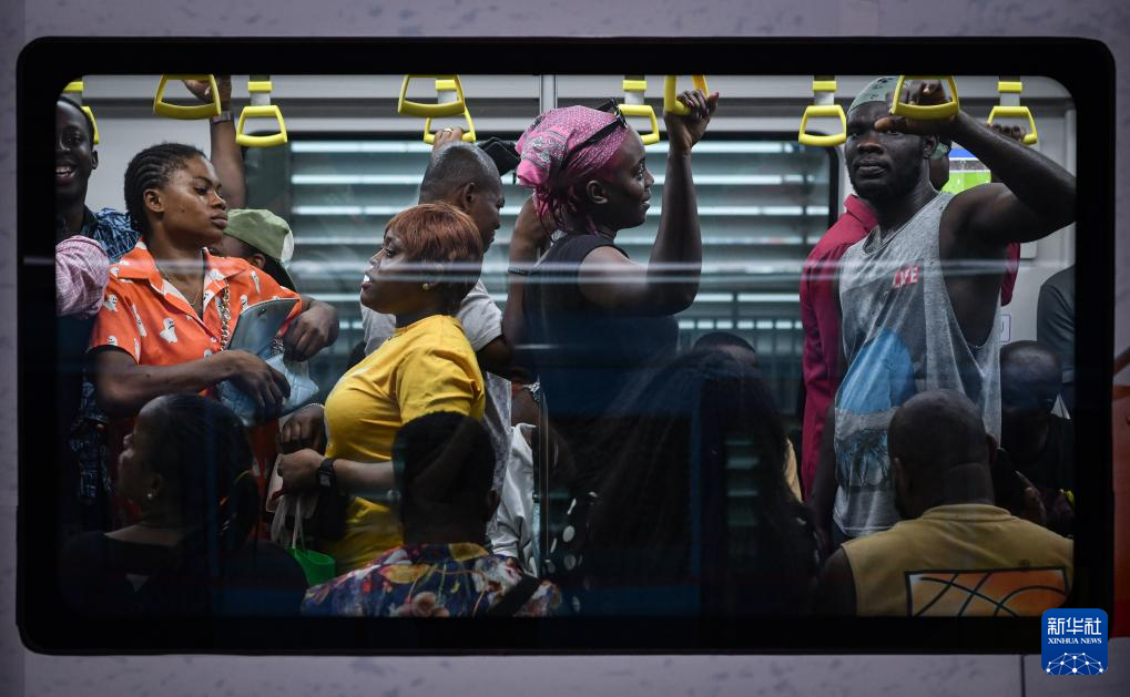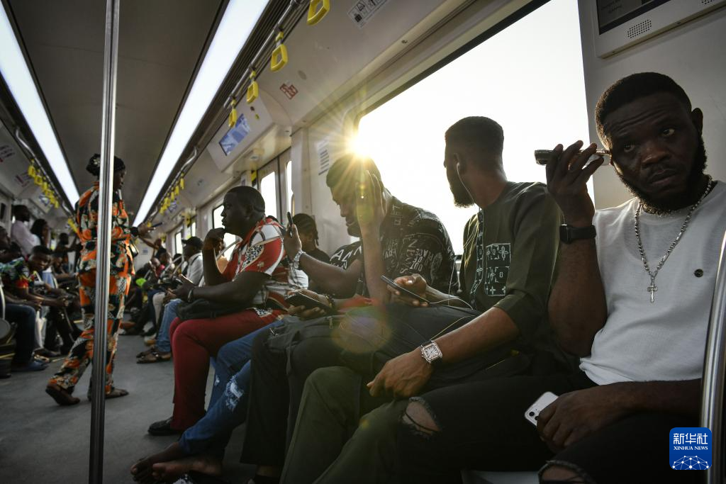 2月28日,在尼日利亚拉各斯,人们乘坐轻轨蓝线列车。