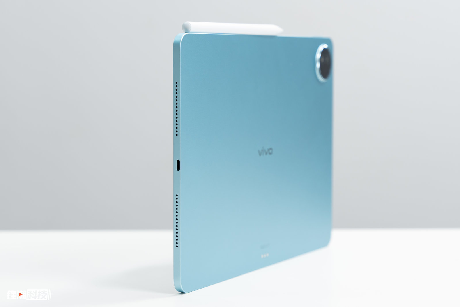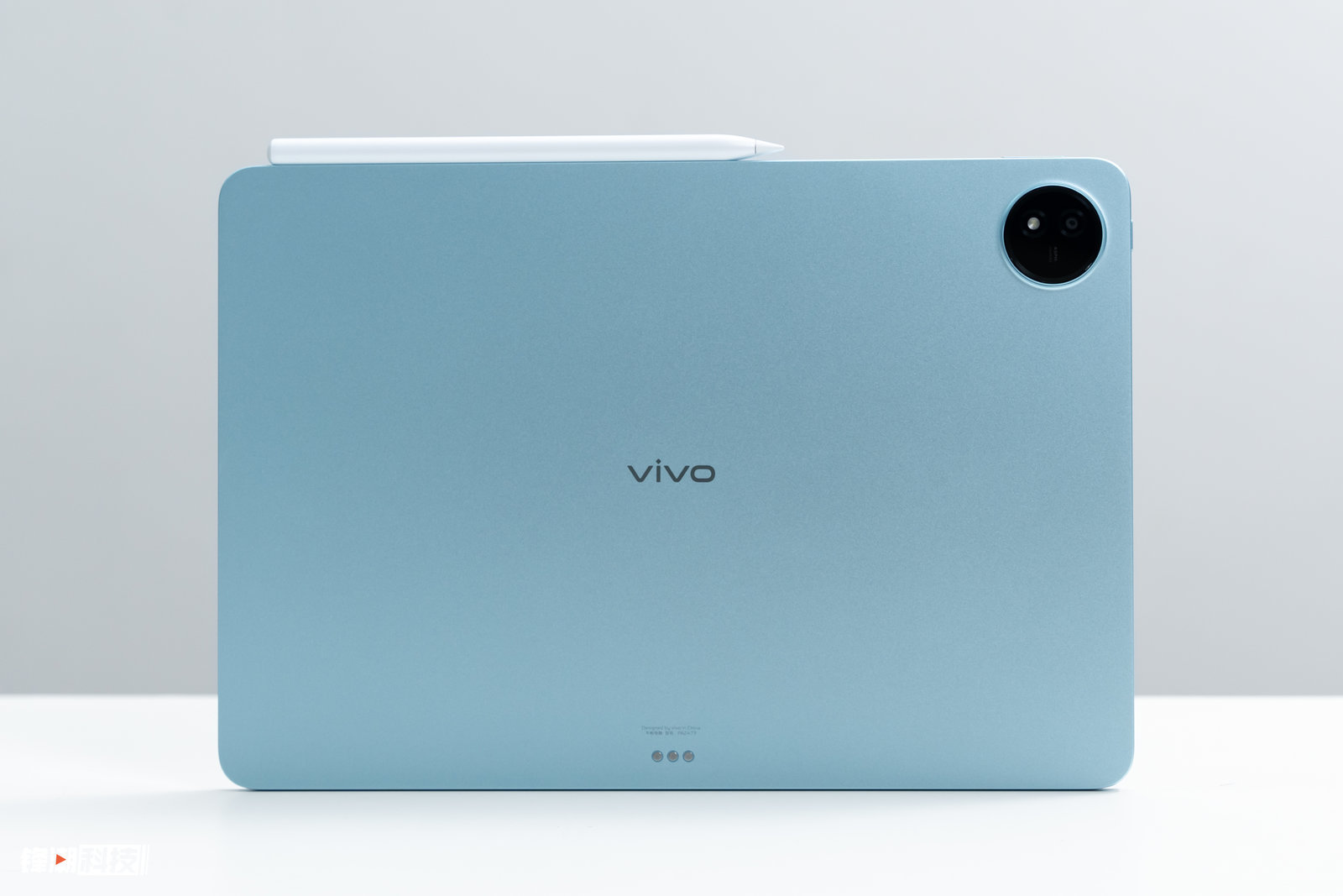 外观方面,vivo Pad3 Pro 依然延续了上一代的简约设计,机身背部只有一个居中的「vivo」标志以及左上角的镜头模组,再配合这个「春潮蓝」配色,整体看来非常简约清爽。