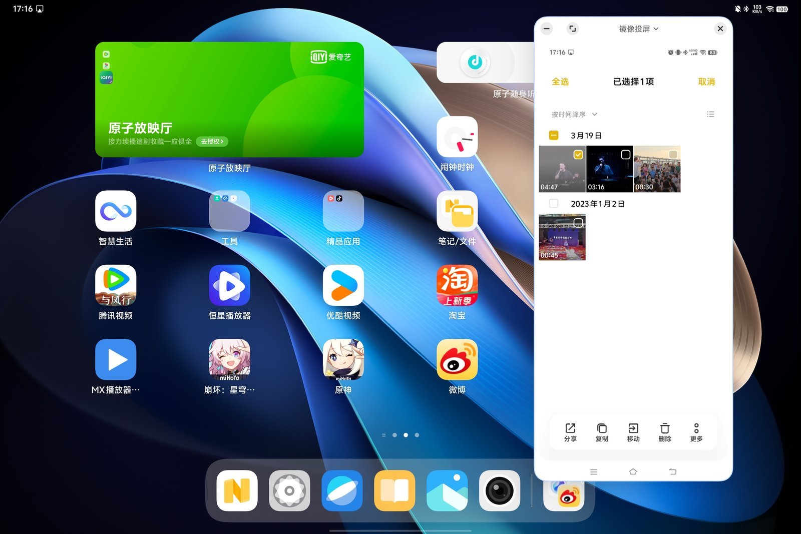 说到体验上最大的提升,在我看来就是 vivo 办公套件了,跨屏互联功能大家都比较熟悉,手机与平板登陆同一个账号之后就可以将手机屏幕投至平板,这样就可以将手机的图片、文件等内容直接拖到平板上,反之亦然,这一点还是非常方便的。