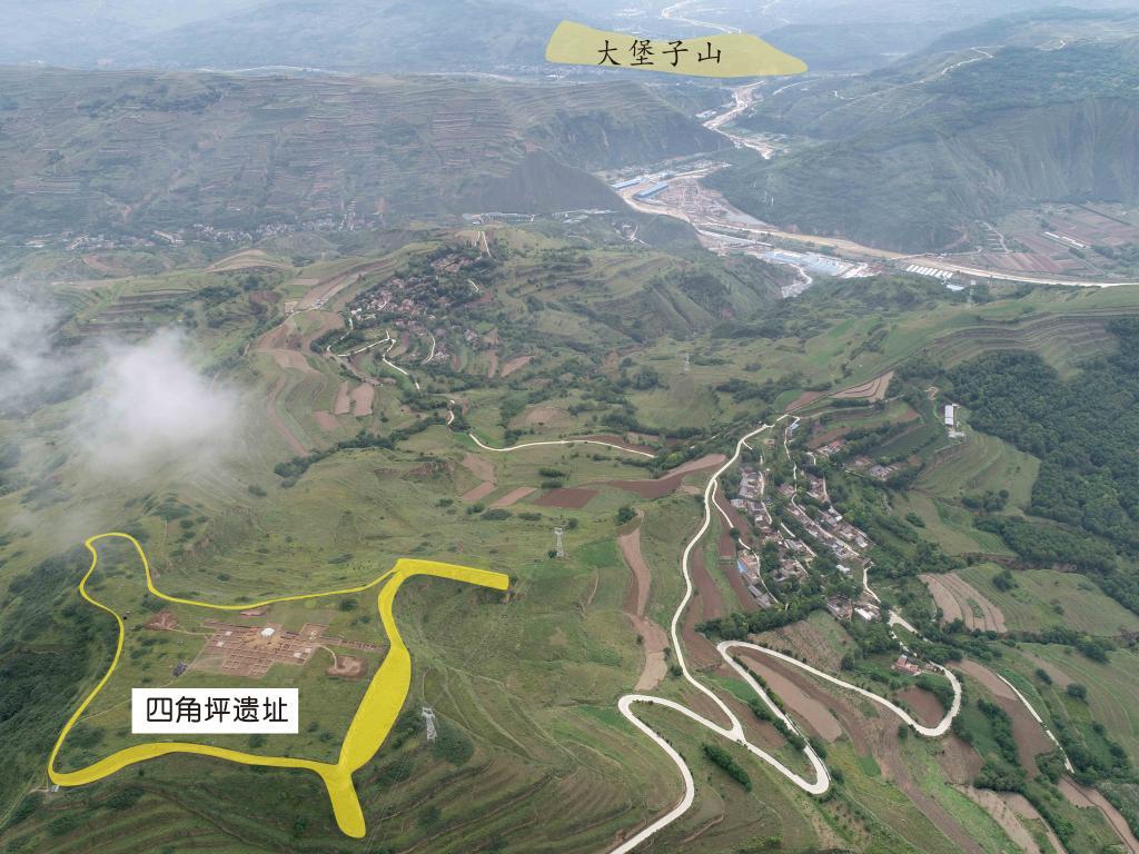 这是甘肃礼县四角坪遗址及周边地形全貌。