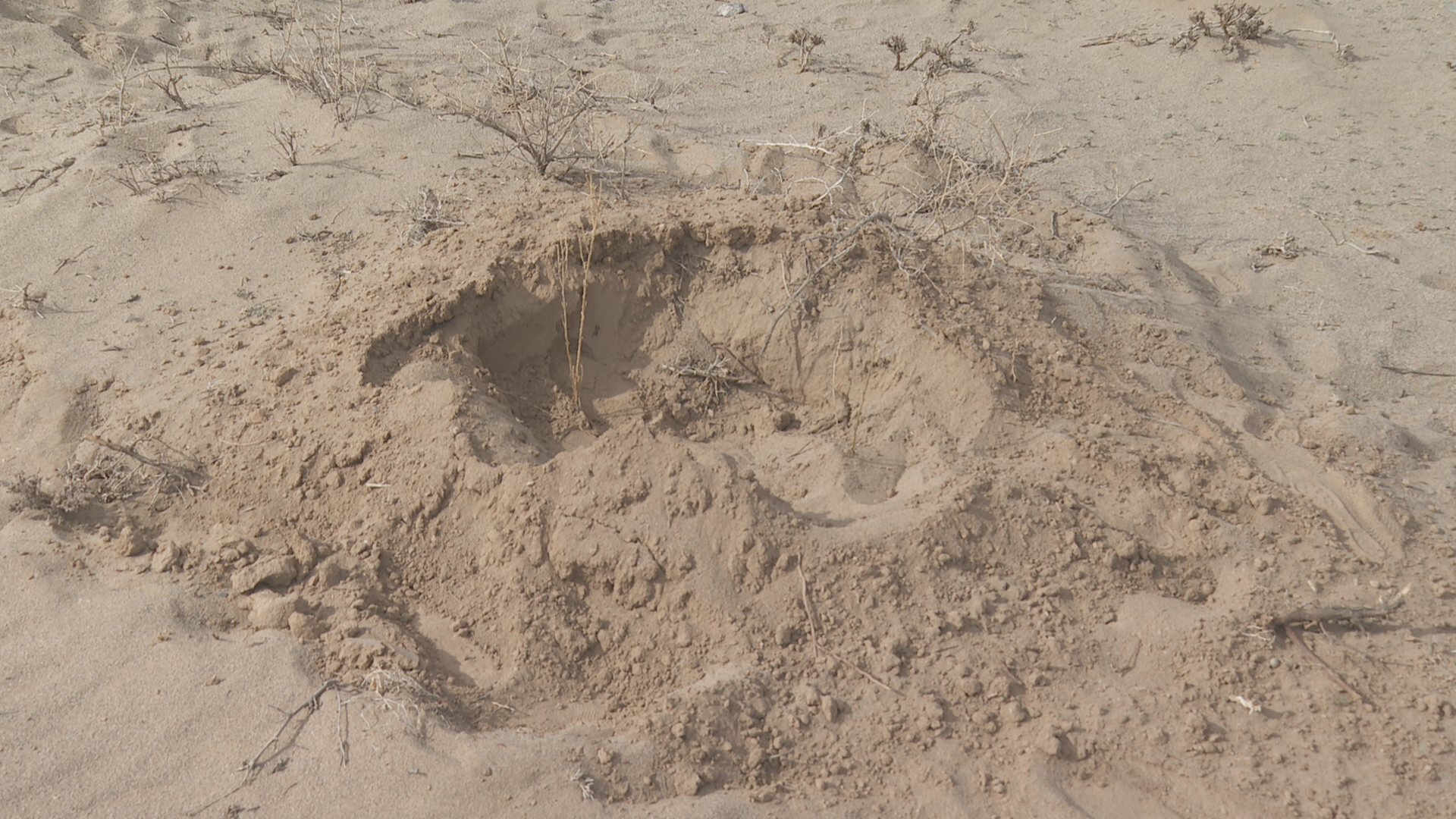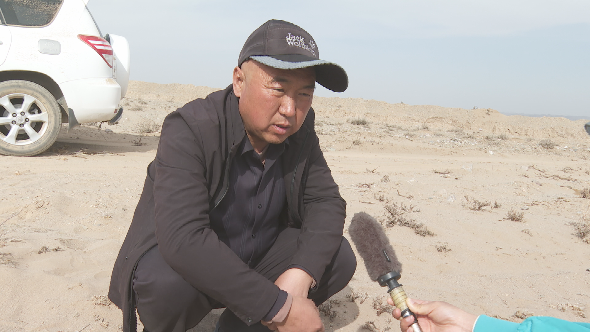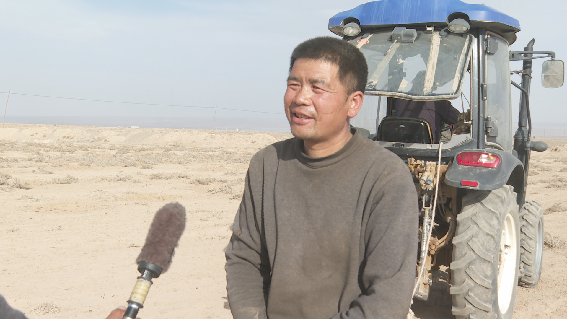 上沙沃人造灌木林片区负责人 陈怀根:我今年过来到景泰县上沙沃镇承包了9000亩地,种了两种治沙植物,一种是梭梭,梭梭不带刺;一种是柠条,柠条带刺,这种植物根发达,(我们)边栽边浇水。我们十天半个月浇一次水,连续浇三个月,成活率就能上去。