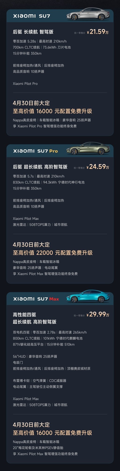 小米SU7 Pro版起售价24.59万元起;