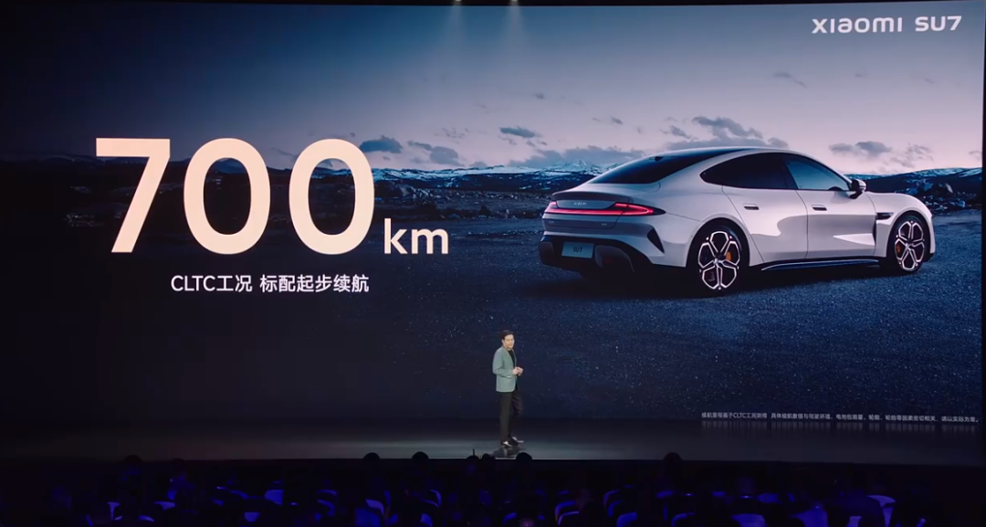得益于强大的电池组,小米SU7标准版续航里程为CLTC工况700公里。值得一提的是,之前工信部显示的小米SU7续航是668公里,最后为了增加续航,雷军决定换成米其林19寸低滚阻轮胎(放弃了普利司通轮胎),增加了几十公里。