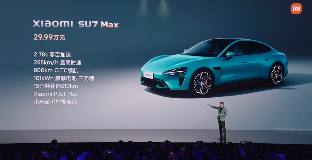 小米SU7 Max(双电机四驱、超长续航、高阶智驾版)售价29.99万元!同样也是今晚10点正式开定,付款5000元即可锁单,4月底交付。