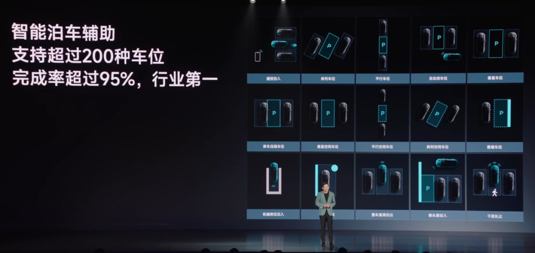 在发布会上,雷军还提到,SU7的智能泊车辅助支持超过200种车位,完成率超过95%居行业第一。