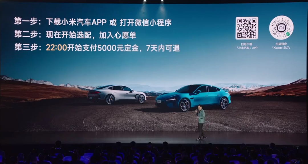 只需三步:第一步,下载小米汽车APP或打开微信小程序;第二步,现在开始选配,加入心愿单;第三步,按规定时间支付5000元定金,定金7天可退。