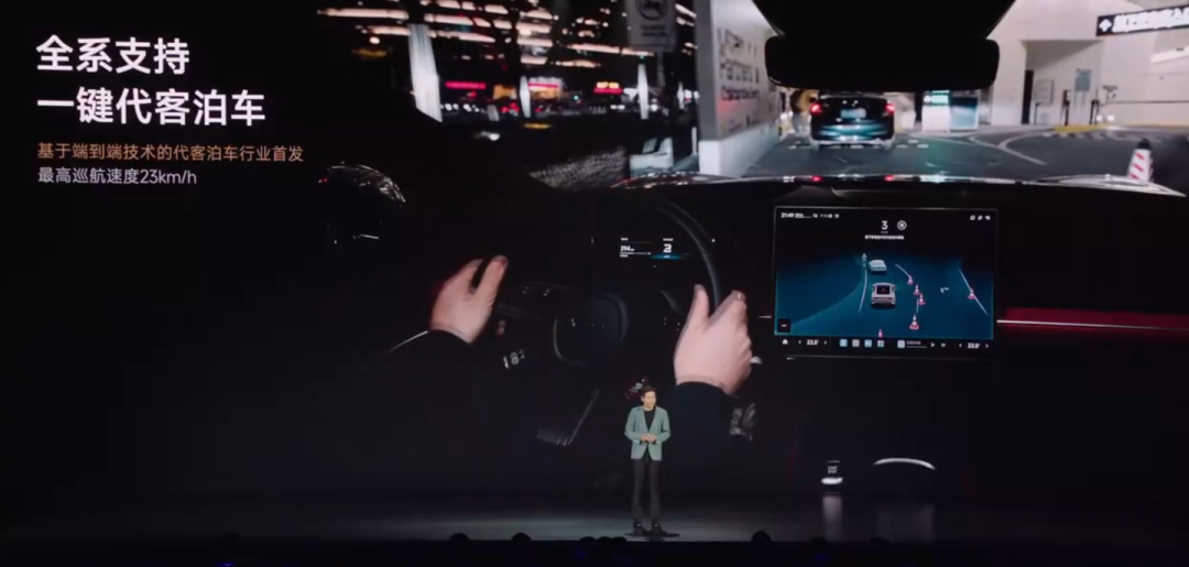 不仅如此,小米SU7还全系支持代客泊车,基于端到端技术的代客泊车行业首发,最高巡航速度可达23km/h。