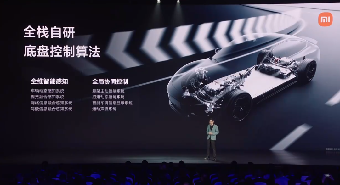 同时,小米SU7搭载小米疾风智能底盘,配备一系列超强配置,例如前轮采用全铝双球节双叉臂悬架,后轮采用五连杆独立悬挂,再搭配CDC阻尼可变减振器、博世ESP10.0车身稳定系统、博世DPB制动控制器以及布雷博四活塞固定卡钳等,极大保障了驾驶的操控的稳定性和安全性。