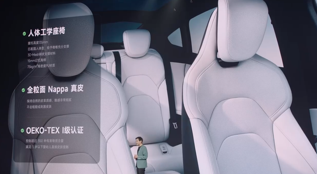 前排体验拉满了,后挂配置当然也能不差,这次后排还能挂上小米平板,除了可以用来显示,还能成为座舱的一部分,用来控制车辆的相关功能,包括导航、空调、调节座椅等。