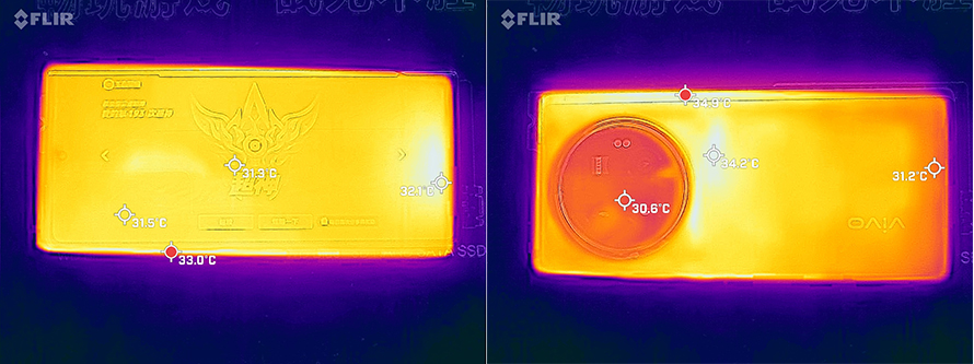 而在28℃左右的室温中,一局20多分钟的对战下来之后,手机的最高温度主要是在边框处为34.9℃左右。