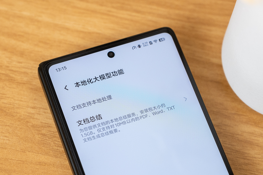 需要注意的是,针对文档总结的本地化大模型功能,还是需要到蓝心小V的App设置里单独下载一下,大约1.5GB的安装包。目前是可以对10MB以内的PDF、Word以及TXT文档生成总结概要。这样即使是在无网络状态下,也可以直接使用。