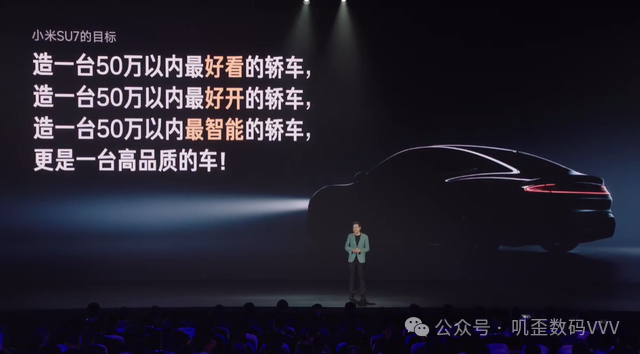 雷军表示,造车很苦,但成功一定很酷 ,也宣布了小米SU7的目标是造一台50万以内最好看、好开、智能的轿车。