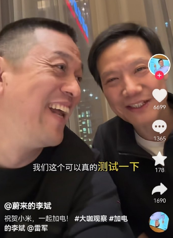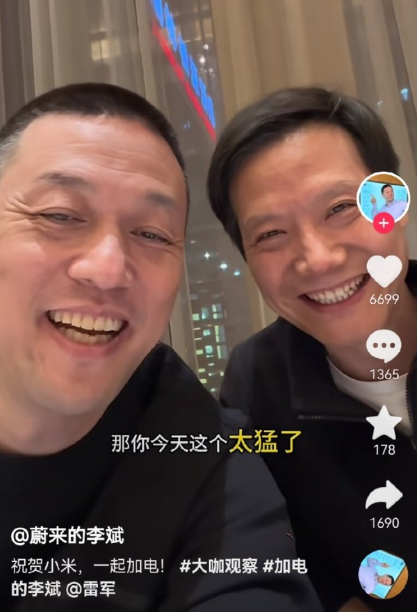 3月28日晚,小米汽车旗下第一款车型——小米SU7正式上市,提供标准版、Pro版和Max三大版本。标准版售价21.59万元,Pro版售价24.59万元,Max版售价29.99万元。据CNMO了解,在小米SU7上市后,蔚来李斌和雷军同框拍摄了一段视频。视频中,李斌以幽默的方式调侃了雷军的身高,笑称要亲自测量一下雷军是否真的达到了一米八一。同时,李斌也对小米SU7的发布会赞不绝口,表示小米的这场发布会势头太猛,让乐道汽车都感到定价的压力。