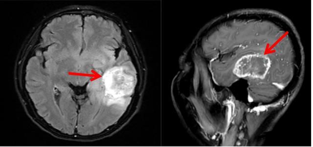 收住院后,匡卫平主任团队对其进行了更细致的头部磁共振检查,确认了肿瘤位于左侧“颞叶”。